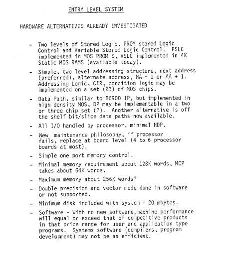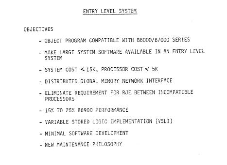 I put together a presentation call “Entry Level System – ELS” (Allweiss, J. “Entry Level System”, internal Burroughs presentation, 1/23/1978). I presented it to Erv, Don Swanson, Software Engineering Department Manager, and Ron Delaura, Hardware Engineering Department Manager. The engineering managers were interested and asked a lot of good questions. Erv was mostly quiet. After all was said, Erv asked, “Jack, can you really do this?” I told him yes. He said, “Well, you delivered on the Piscataway Memory, you helped us avoid the BCML disaster, so I’ll bet you will deliver on this”.